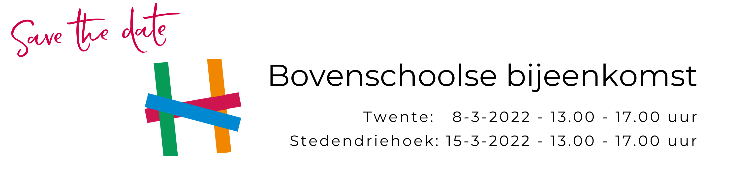 De volgende Bovenschoolse bijeenkomsten zijn al gepland: 8 maart in Twente en 15maart in de Stedendriehoek. Begin maart besluiten we of dat live of online bijeenkomsten worden. Blok het vast in je agenda, dan weet je zeker dat je erbij kunt zijn!